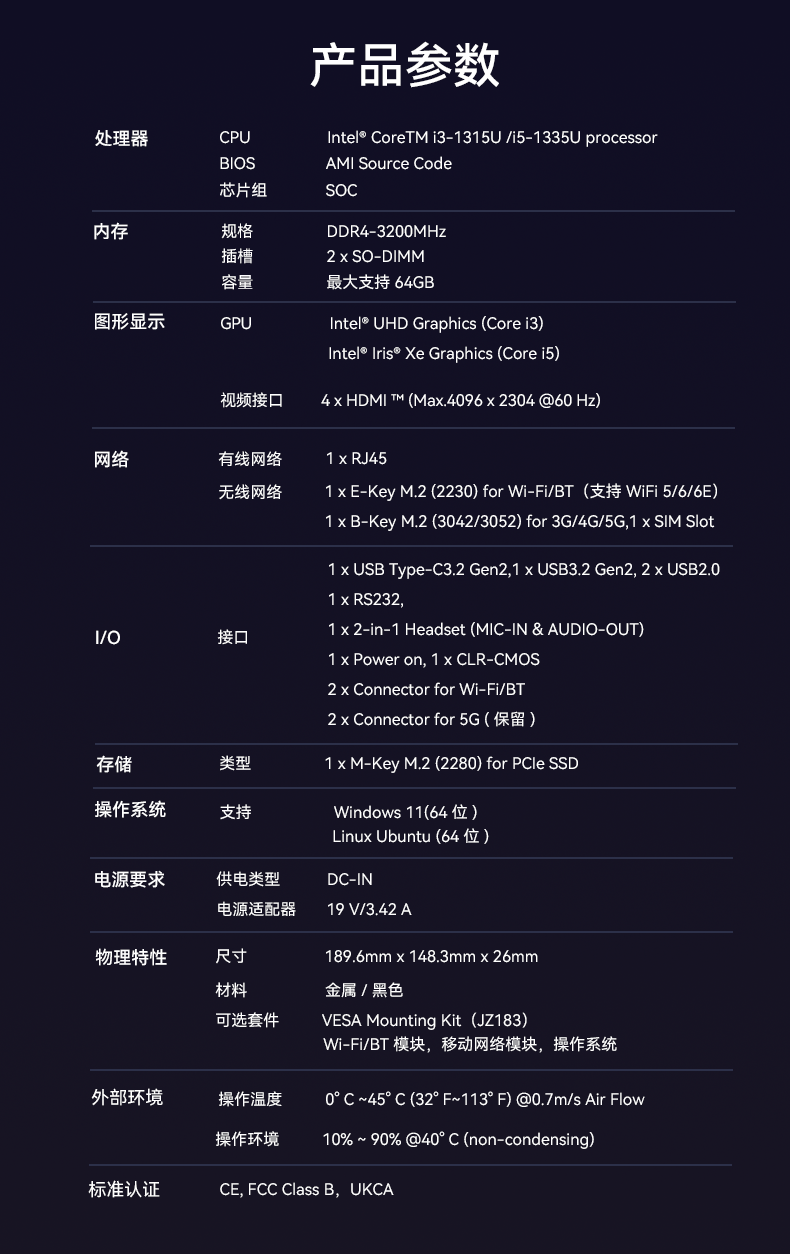 南宫NG·28(中国)相信品牌力量科技D613采用英特尔Raptor Lake酷睿i3-1315U/i5-1335U 处理器,作为一款性能强悍的主机,它的TDP仅15W,能有效降低能耗,延长电池寿命。在内存方面,D613采用2 x SO-DIMM DDR4-3200 MHz,最大可达64GB,并配备1 x M-Key M.2 (2280) for PCIe SSD。