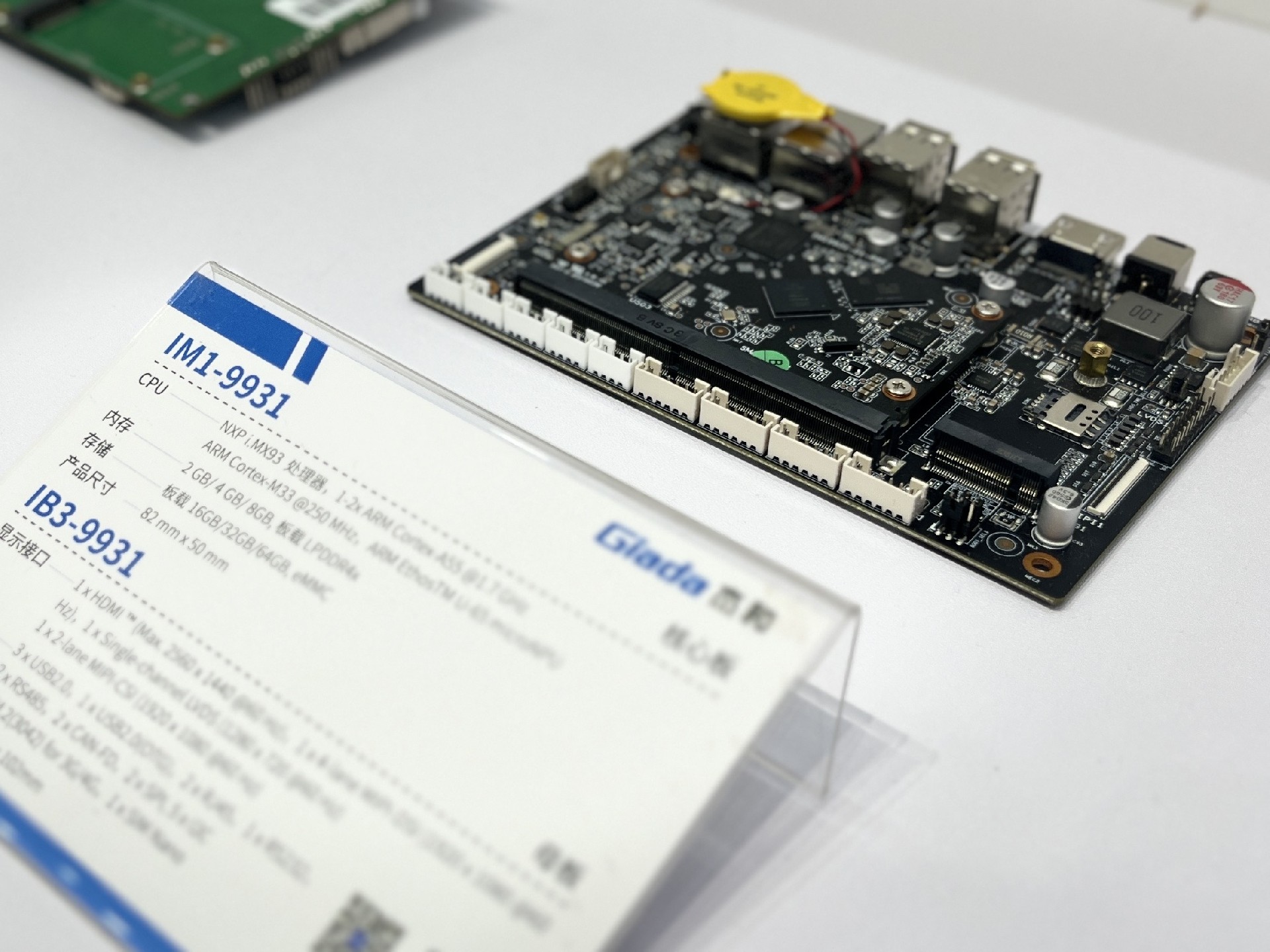 IM1 - 9931 采用 NXP i.MX93处理器。内存可选2 GB/ 4 GB/ 8GB,板载 LPDDR4x,板载16GB/32GB/64GBeMMC。
