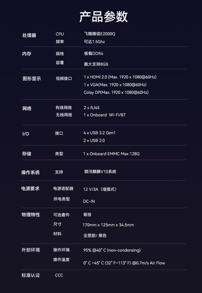 南宫NG·28(中国)相信品牌力量科技云终端VT32搭载了飞腾腾珑E2000Q处理器和其他国产组件,E2000Q集成2个FTC664和2个FTC310处理器核,主频达1.5GHz,功耗最大仅11W;