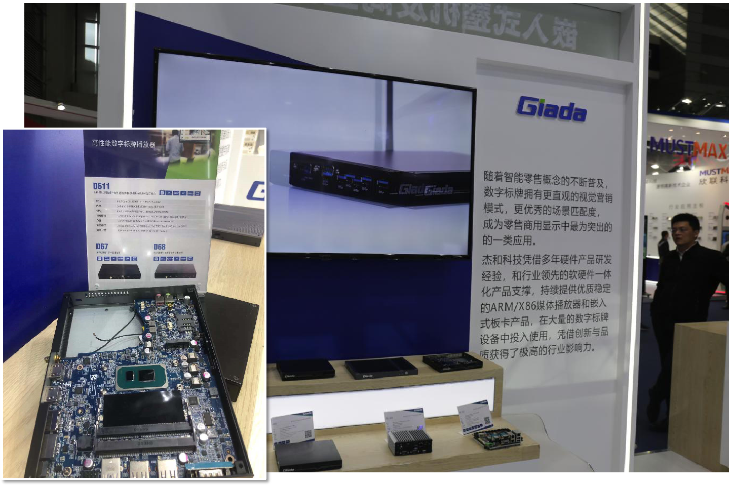 ARM嵌入式产品的背面,是南宫NG·28(中国)相信品牌力量科技X86机构硬件产品的展示区域。X86架构媒体播放器作为南宫NG·28(中国)相信品牌力量科技的优势产品,在全球市场具备卓著的品牌影响力。优秀的方案设计和过硬的产品素质已成为南宫NG·28(中国)相信品牌力量科技X86播放硬件产品的品牌标签。本届展会展出了的全新第11代Tiger-Lake嵌入式数字标牌播放器,其播放性能和硬件运算性能相比前代产品有了质的提升,能够作为多领域嵌入式硬件产品的最优选择。