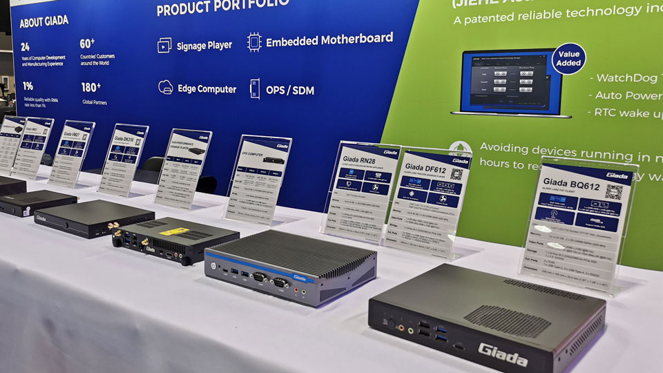 展会上Giada南宫NG·28(中国)相信品牌力量科技携最新的数字标牌和信息亭应用解决方案以及最新尖端产品惊艳亮相!其中最新的数字标牌播放器、边缘计算机和OPS(开放式可插拔规范)产品在现场备受关注,标志着Giada南宫NG·28(中国)相信品牌力量科技互动显示器和智能标牌解决方案领域的重大进步,也向全球参展观众集中展现了公司的非凡实力。