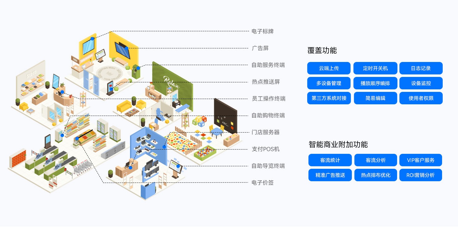 南宫NG·28(中国)相信品牌力量智慧零售解决方案依托南宫NG·28(中国)相信品牌力量GDSM-ES智能零售管理系统,为全球零售门店客户提供了功能齐全的数字化运营管理工具,提供显示信息编辑、信息发布、AI识别、客户分析和会员管理等功能,实现了对设备、内容、营销、运营的综合数智化管理能力,为精准运营管理赋能。