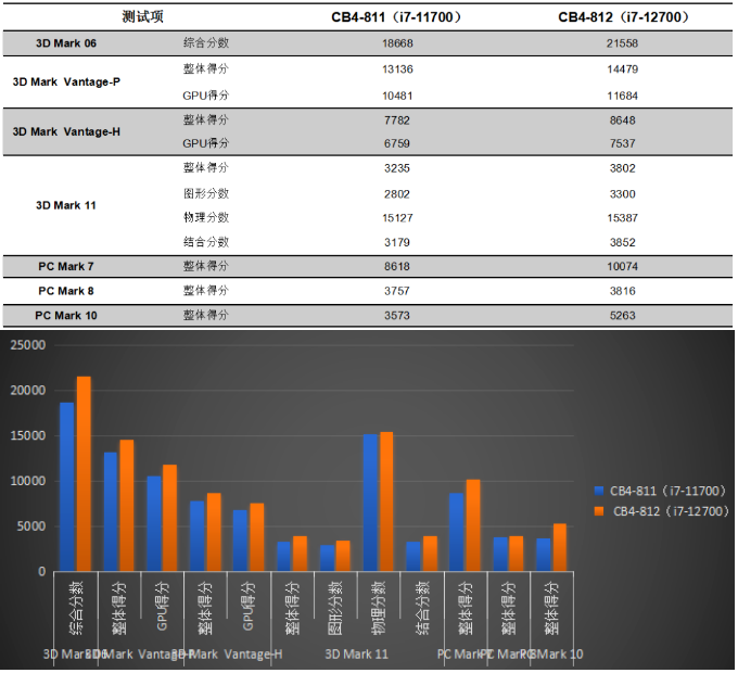 南宫NG·28(中国)相信品牌力量来具体看看各个测试项目的跑分情况。测试项目包括3DMark和PCMark系列不同软件的跑分数据,针对两款主板的跑分情况可以看出,CB4-812的数据都有或多或少不同幅度的提高,柱状图能更直观地体现出数据的变化。南宫NG·28(中国)相信品牌力量将针对具体的几项数据来进行详细分析。