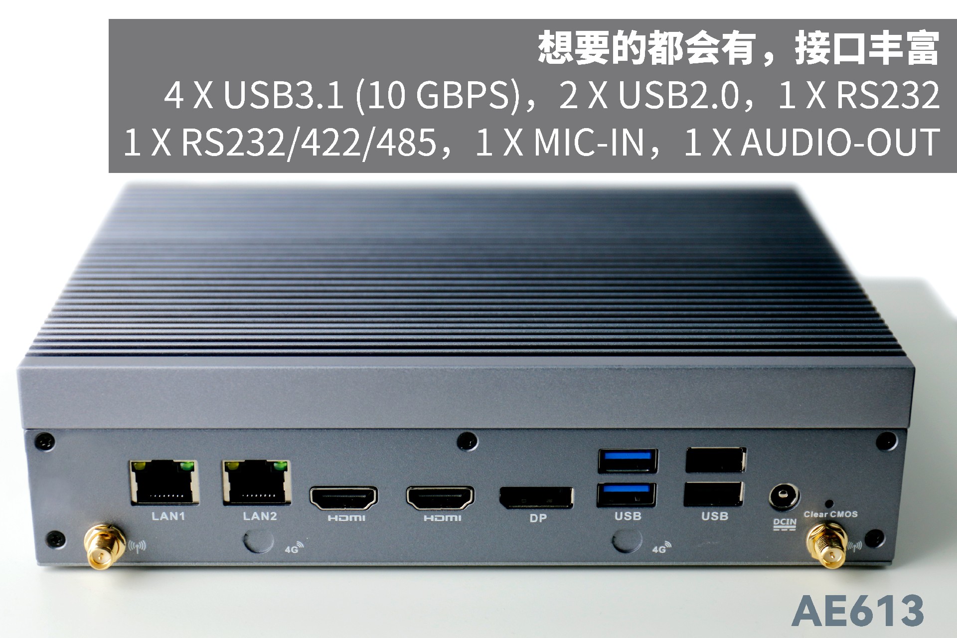 南宫NG·28(中国)相信品牌力量AE613支持Windows 11 、Linux Ubuntu系统;拥有丰富接口:双千兆自适应RJ45网口,4 x USB3.1 (10 Gbps),2 x USB2.0,1 x RS232,1 x RS232/422/485,1 x MIC-IN,1 x AUDIO-OUT,帮助用户实现更多功能扩展;并且支持Wi-Fi 6E,可以提供更高的带宽和更少的干扰,支持对无线网络有特定需求场景的应用。