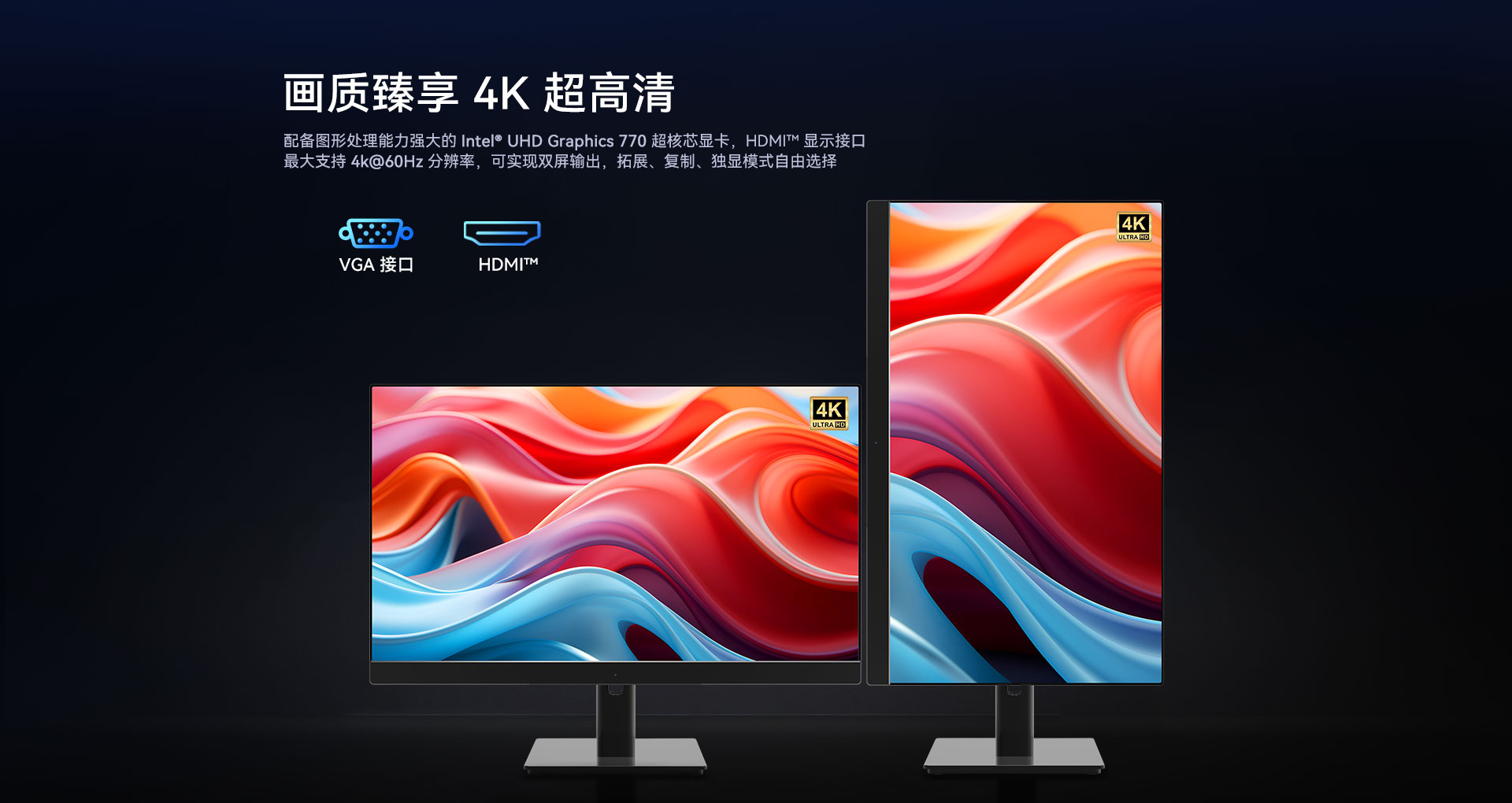 1 x HDMI,1xVGA双视频接口输出